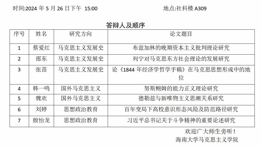 澳门正规电子游戏平台2024届(上)研究生学位论文答辩公告(三)