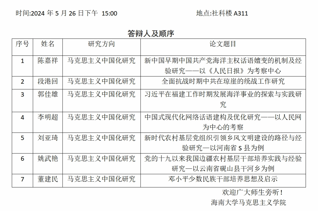 澳门正规电子游戏平台2024届(上)研究生学位论文答辩公告(五)