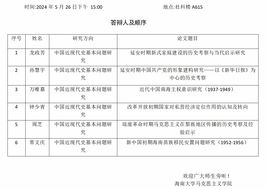 澳门正规电子游戏平台2024届(上)研究生学位论文答辩公告(六)