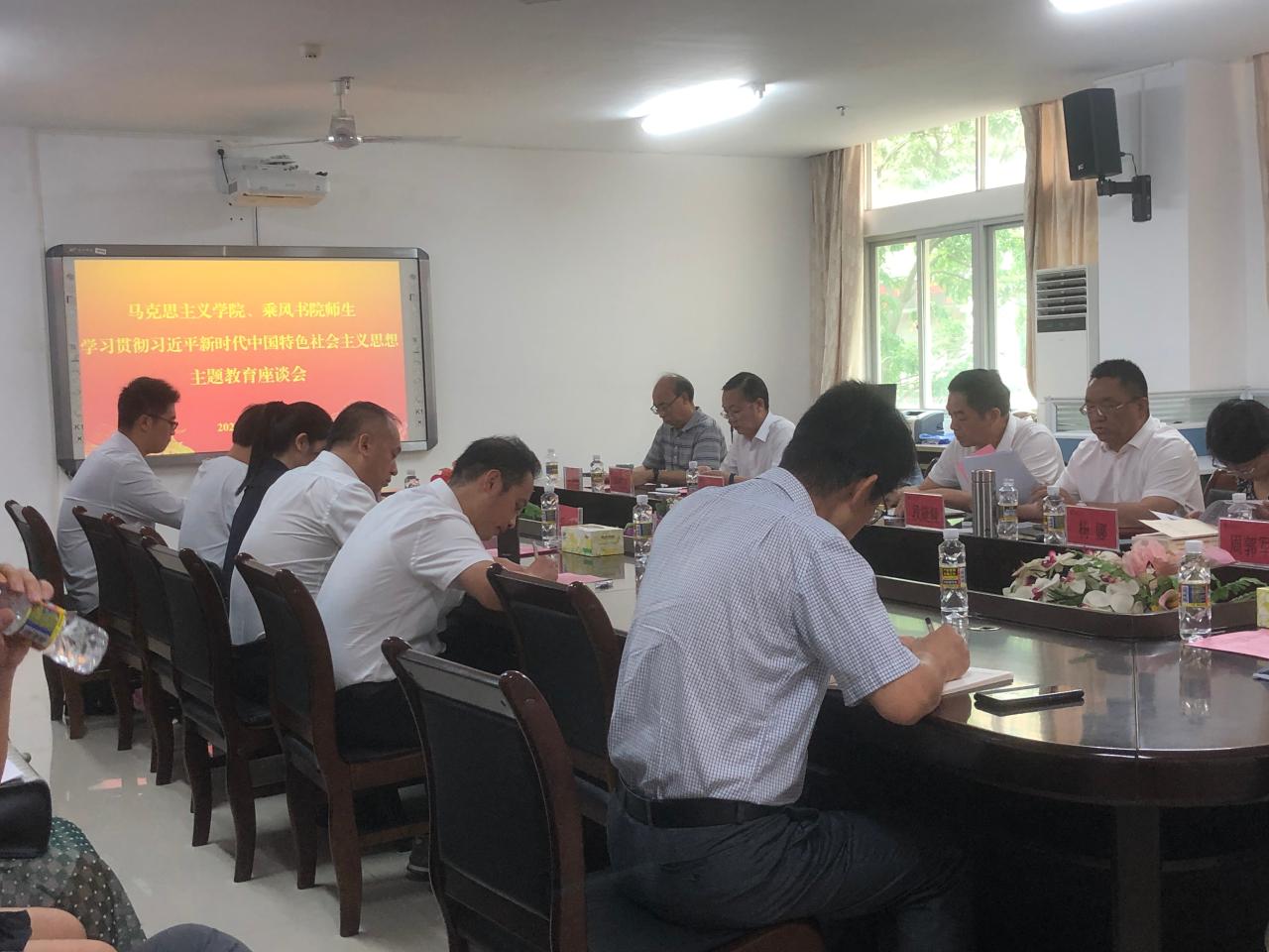 4月21日下午,澳门正规电子游戏平台和乘风书院师生学习贯彻习近平新时代中国特色社会主义思想主题教育座谈会暨主题教育读书班辅导报告会在社科楼A-311室顺利召开,与会师生围绕“深入学习研究习近平新时代中国特色社会主义思想,在中国式现代化和中国特色自由贸易港建设中发挥思想引领作用”这一主题进行深入研讨。海南省委主题教育第九巡回指导组成员黄三喜、澳门正规电子游戏平台主题教育领导小组办公室综合组副组长徐望来,澳门正规电子游戏平台党委书记段捷频、副院长杨娜、吴朝阳,乘风书院党委副书记周郭军出席,澳门正规电子游戏平台各党支部书记、各行政办主任、教师党员代表和乘风书院学生党员代表参加座谈会。会议由澳门正规电子游戏平台党委书记段捷频主持。