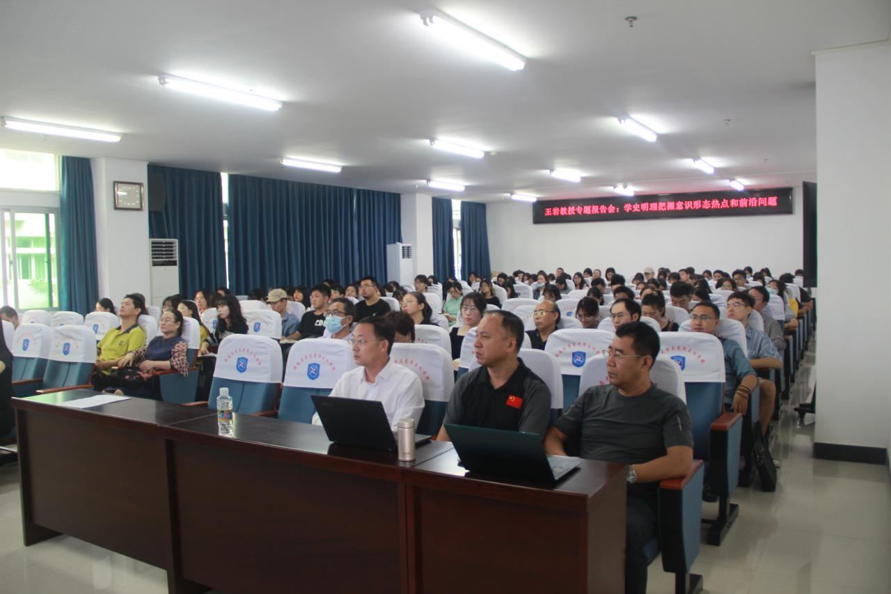10月29日,南京航空大学澳门正规电子游戏平台王岩教授到澳门正规电子游戏平台指导交流,在社科楼A309为学院师生作题为“学史明理 把握意识形态热点和前沿问题” 的专题报告。院领导班子全体成员、没课的教师和全体研究生参加报告会。报告会由院长张云阁主持。