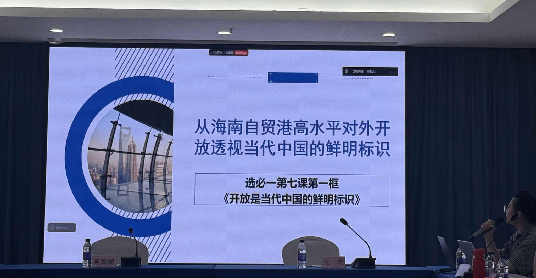 来自澳门正规电子游戏平台等四位老师围绕“高水平对外开放在海南自贸港的创新实践”进行了“同题异构”教学展示。上海师范大学附属儋州实验学校的吴丽贞老师通过与AI小椰对话形式,让课堂在生动活泼的氛围中实现了知识的传递;东方市铁路中学的杨宗舒老师用“知信行”的理念践行国家战略到个人行动的落实;临高县临高中学的陈莹老师用“我与自贸港”,从小案例到海南上升至国家,诉说了不是“追随者”,而应是“引领者”的青年责任;澳门正规电子游戏平台的安睿颖老师以“是什么、为什么、怎么做”贯穿,“国际循环和国内循环”的供需为理论抓手,用“围棋布局”思维,讲述了国家战略到海南实践的制度指引与实践创新之路。