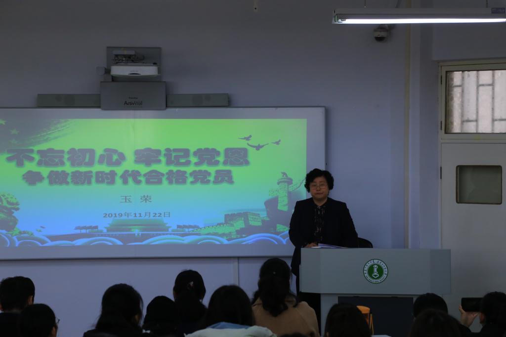 50年多前的惊心动魄,玉荣记忆犹新。她以“不忘初心牢记党恩,做新时代合格党员”为题,跟同学们讲到:“一个人要有一种社会责任感,这种责任感是从小树立的——不能只以‘我’为中心,遇事躲着走。我从小致残,但是组织上给我安上假肢,党和人民把我从一个普通牧民的孩子,培养成一名大学生、一名民族干部,我也得到了很多普通人得不到的荣誉和待遇。国家已经给了我们这么大的荣誉,这么多年一直没有忘记我们。党和人民需要的时候我们就要站出来,给青少年讲述我们那一段经历,目的是通过我们的人生感悟、体会,跟当代青少年探讨人生的价值。”
