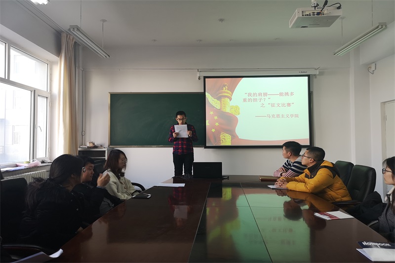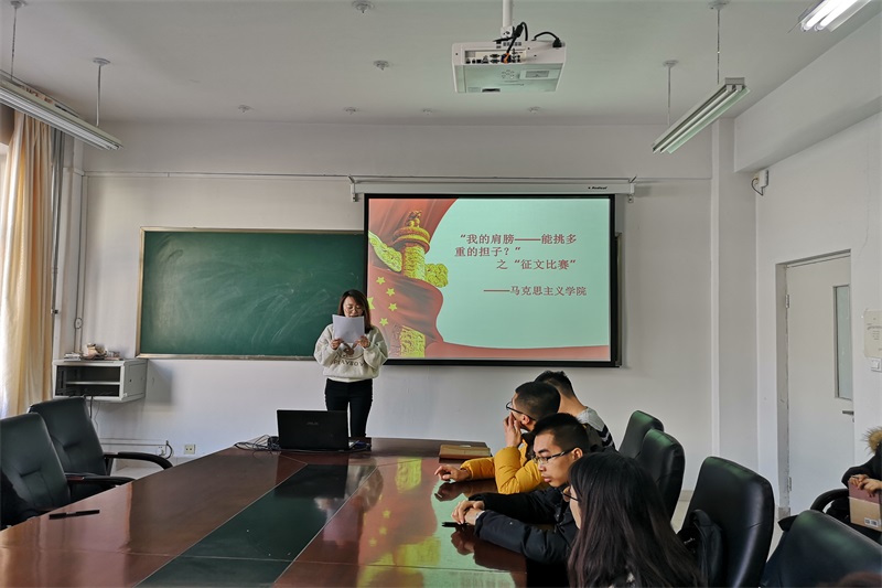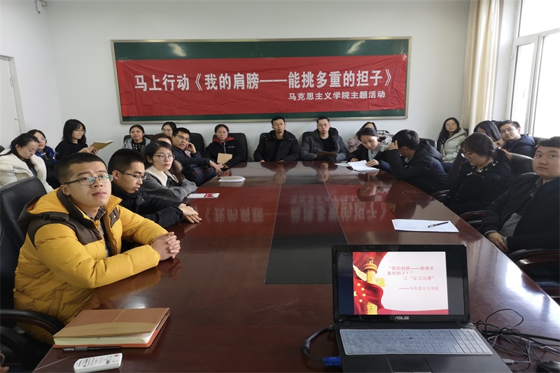 2018年12月25日中午beat365在盛乐校区学院楼举办“马上行动--我的肩膀能挑多重的担子”之征文比赛活动。团总支书记范晓刚老师及全体研究生参加了本次活动。