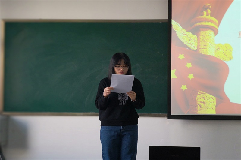 赵佳伟同学与大家分享的是总书记在十九大报告中强调的“我们的军队是人民军队,我们的国防是全民国防”。正是这样性质的军队,才能使得中国在漫长艰苦的斗争岁月里取得一次又一次的伟大胜利,在建设社会主义的过程中屡立新功。同学们也认识到实现中华民族伟大复兴的中国梦正是需要一支听党指挥,能打胜仗,作风优良的队伍的保驾护航。