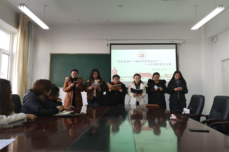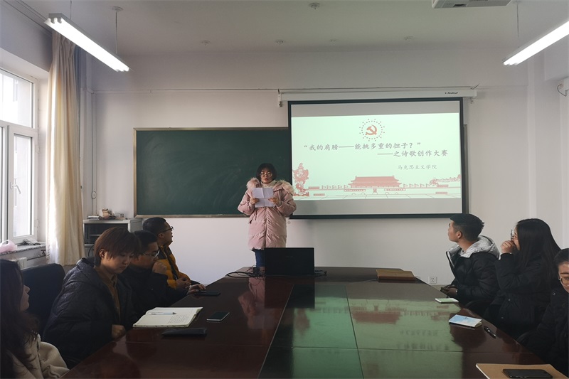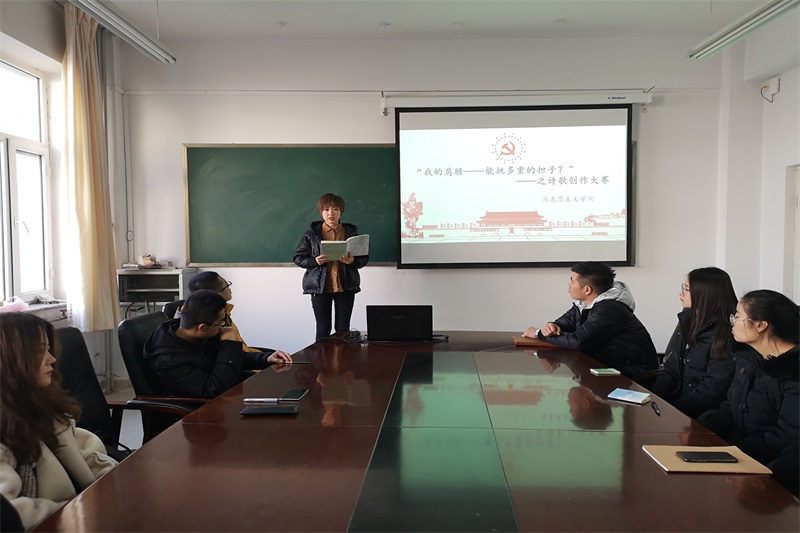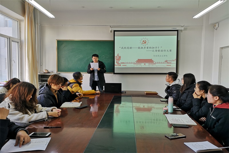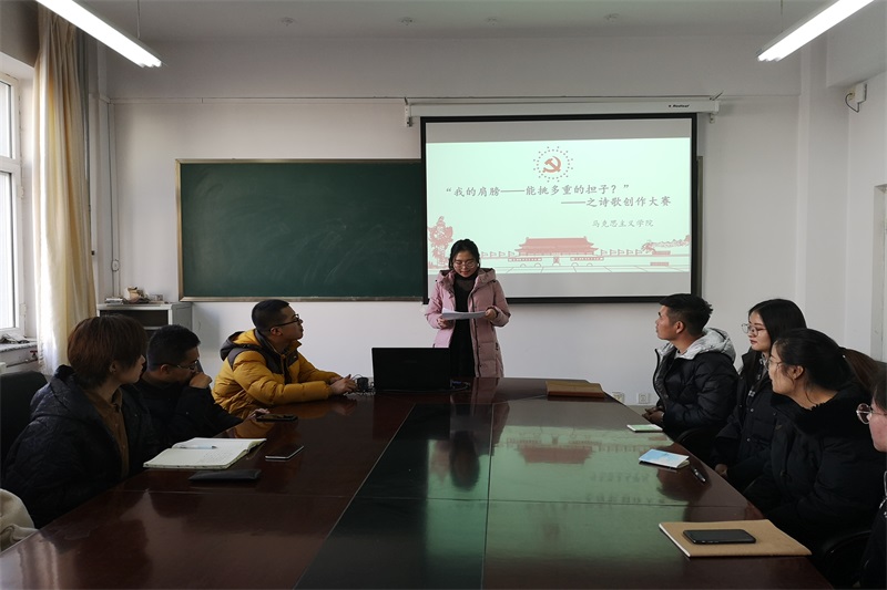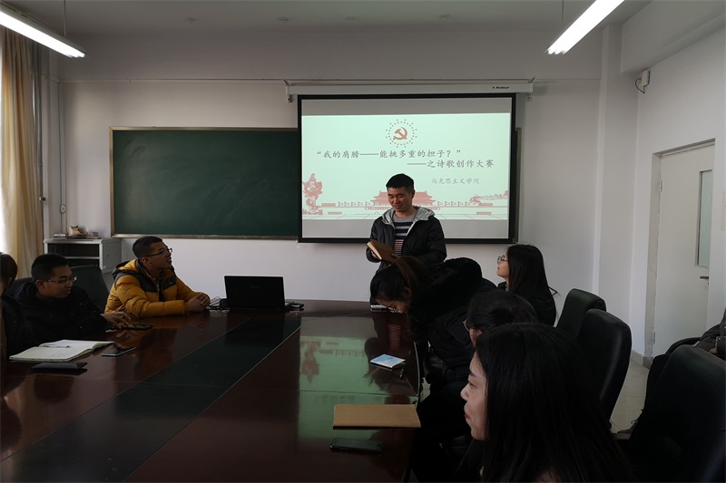 2018年12月18日中午,beat365在盛乐校区学院楼B216举办“诗歌创作”活动。团支部书记范晓刚老师及研一、研二全体研究生参加了本次活动。