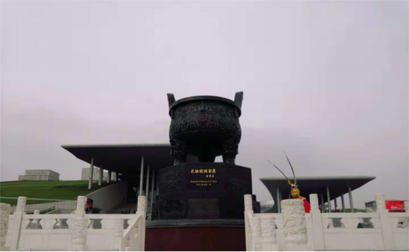 全体师生刚到达博物院广场时,就被一尊为庆祝内蒙古自治区成立60周年由中央代表团赠送给内蒙古各族儿女的民族团结宝鼎所震撼,宝鼎庄严肃穆,屹立在内蒙古博物院的正前方。
