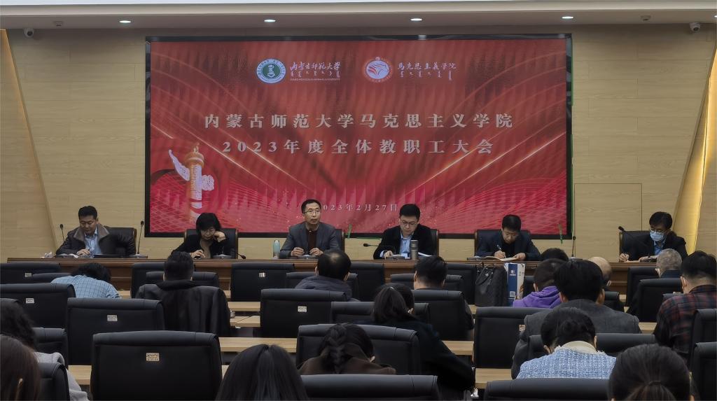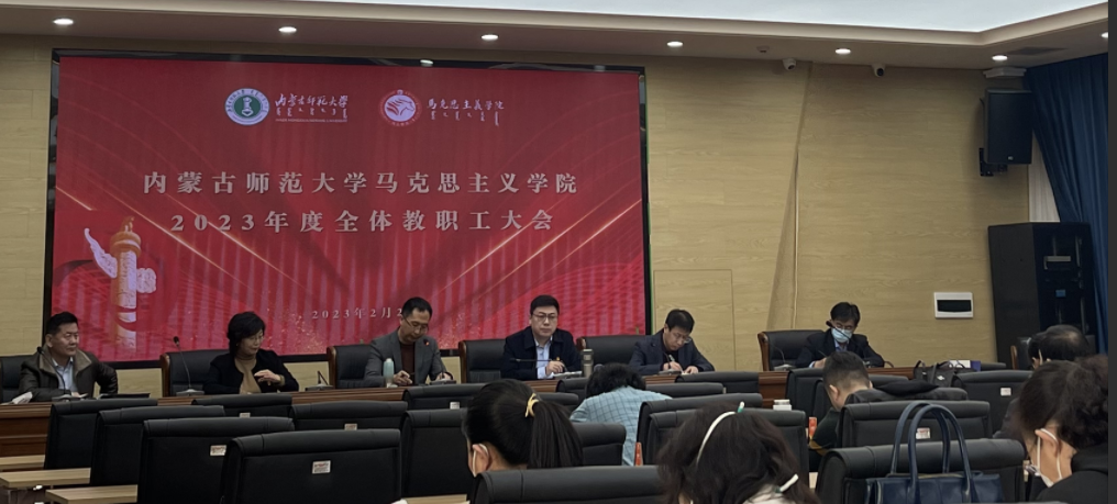 会上,学院党政负责人对2023年学院重点工作进行安排部署。拓俊杰提出四点工作要求:一是要高度重视意识形态工作,增强“四个意识”,坚定“四个自信”。深入贯彻落实党的二十大关于全面从严治党的战略部署,深刻领悟“两个确立”的决定性意义,以永不懈怠的精神履职尽责,严守师风师德规范;二是要把党的二十大报告关于教育的重大部署切实落实到实际教学科研工作中,并紧密结合自治区“五大任务”开展教学授课;三是要深入推进“大思政课”格局建设,充分利用好书本之外的教学资源,创新教学理念,重磅打造“微视频”教学精品成果,推动教育数字化转型发展;四是要加强与学生的谈心交流。他强调,每一位教师都要有更高的政治站位,更广阔的视野,更深厚的情怀,不仅要教好书,做好研究,还要关注学生思想心理动态,及时疏导学生负面情绪,关爱学生心理健康。