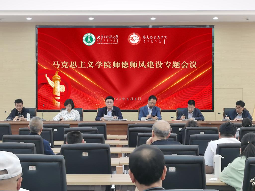 会上,拓俊杰传达了李树林书记重要讲话精神,全文传达了《内蒙古师范大学2023年度教职工师德师风涵养教育暨开展师德师风建设"8+N"专项行动工作方案》。方案部署了在全校范围组织一轮教育法规学习活动、举办一次“师德传承结对”活动、实施一次“校史与师德”专题教育、树立一批模范典型、作出一项庄严承诺、用好一个大平台、落实一份关爱清单、开展“滚动式”自查督导共8项专题教育活动安排。在各学院各部门有针对性开展“N”自选特色活动,不断巩固提升师德师风建设。