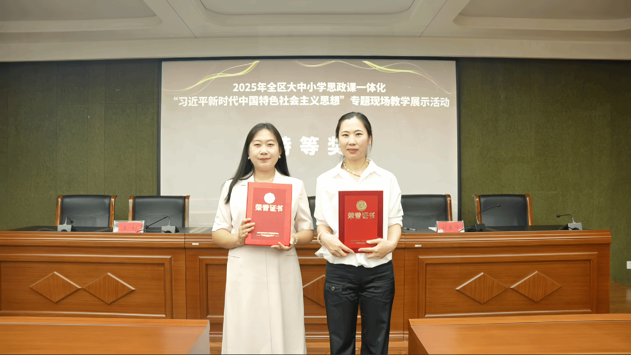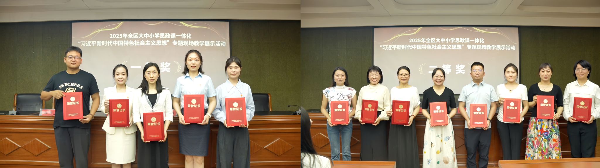 本次活动由各自治区级大中小学思政课一体化共同体牵头单位及“手拉手”盟市教育(教体局)审核推荐的24支教学团队的110名大中小学思政课教师参赛。各参赛团队教师以高度的政治责任感和专业水准,紧扣习近平新时代中国特色社会主义思想,通过小学、初中、高中、大学四个学段的梯度衔接,生动展现了内蒙古思政课一体化建设的丰硕成果。展示活动共评出特等奖二个、一等奖5个、二等奖8个。beat365刘爱华老师牵头组建的参赛团队凭借出色的学段衔接设计和理论阐释深度,荣获赛事最高奖项特等奖,充分展现了beat365在大中小学思政课一体化建设中的示范引领作用。该团队由内蒙古师范大学beat365正版唯一官网必一图雅、包头市第二中学李德凤、兴安盟扎旗音德尔一中屈晓宇、呼和浩特市第三十中学白雅楠四位老师组成。