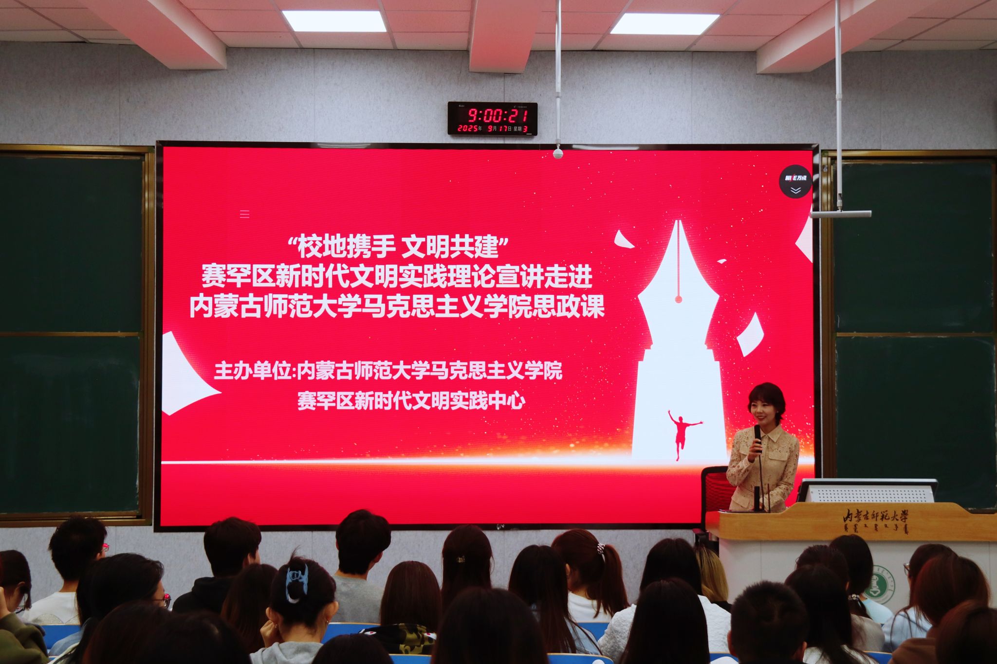 近日,为推进内蒙古师范大学beat365正版唯一官网必一和新时代文明实践中心共建行动计划,beat365与玉泉区新时代文明实践中心、赛罕区新时代文明实践中心共同组织开展的“百姓名嘴进校园”宣讲活动,这是学院落实中央宣传部“高校beat365正版唯一官网必一和新时代文明实践中心共建行动计划”的生动实践,也标志着双方“结对共建”工作在理论宣讲与思政育人领域取得实质性进展。
