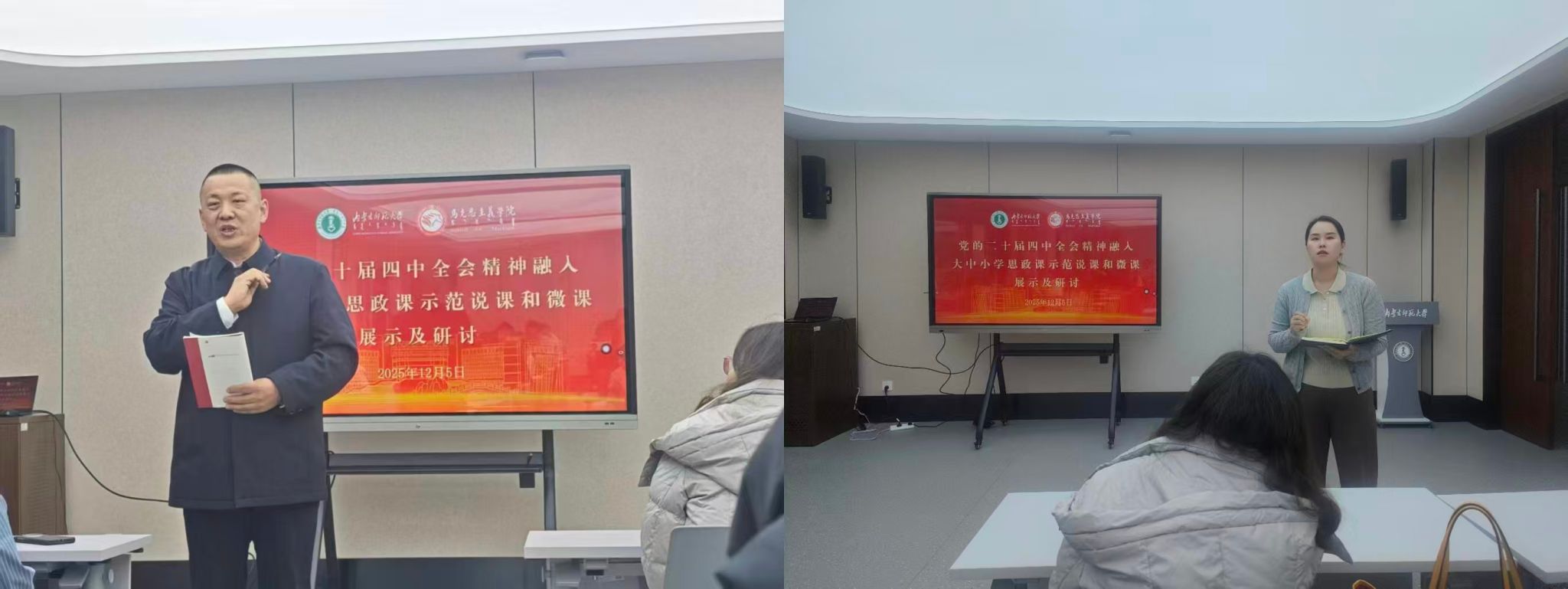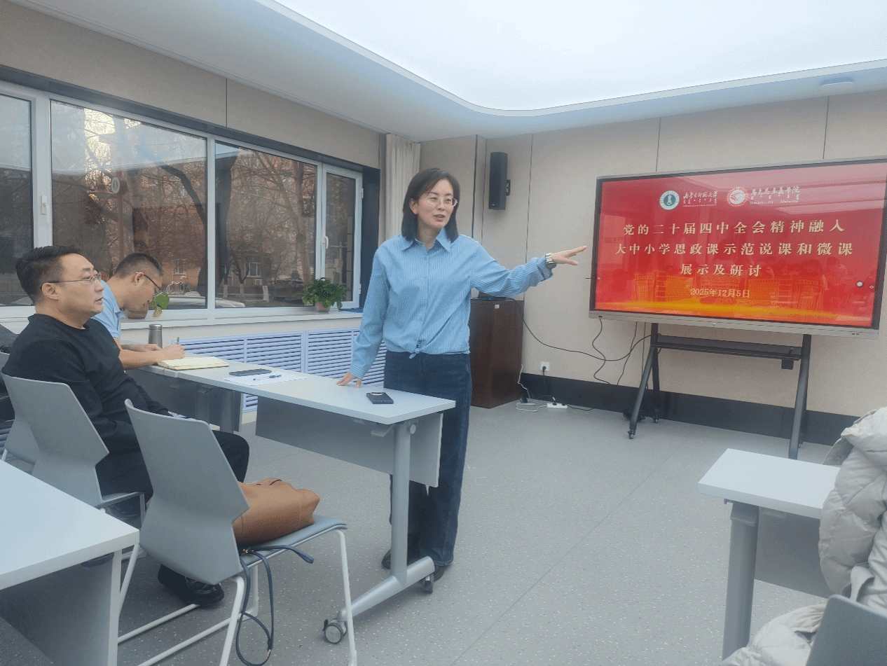 在研讨环节中,各思政课教研室教师代表紧密结合所授课程进行发言。钢特木尔教授认为:“思政课教师要深刻把握党的二十届四中全会精神的核心要义,将理论学习成果转化为教学实效;要借鉴示范课中的先进经验,创新教学方法,推动四中全会精神带着热气进课堂、进学生头脑。思政课必须打破课堂边界,通过社会实践、志愿服务、调研考察等多种形式,使学生在实践中深化理论认知。推动思政小课堂与社会大课堂有机结合,提升学生的实践创新能力和社会责任感。许星杰副教授表示:“通过观摩学习,我对如何将全会精神有机融入教学有了更清晰的认识。特别是微课展示中运用鲜活案例解读政策要点的创新方式,为课堂教学提供了可操作的实践范本。数字化转型也正在重塑铸牢中华民族共同体意识教育的实施路径,智能技术为教育内容与方法的创新提供了新的可能性。白文静副教授认为:“思政课教师要用好课堂教学这个主渠道,以数字技术支撑和引领思政课教学方法创新。打造网络云课堂。以知识图谱为牵引,驱动线上线下思政课堂混合式教学,引导学生开展自主性学习。通过大数据分析实现精准的学情研判,找准学生自学过程中的“难点”“盲点”,为线下教学提供依据。” 任伟副教授认为:“继续拓展育人资源,利用人工智能、数字场馆等技术,让全会精神的传播更具吸引力和感染力,真正实现思政课建设与党的创新理论武装同步推进。白文丽副教授指出:“思政课教学必须紧跟时代步伐,紧密联系学生思想实际。要注重培养学生的家国情怀、社会责任感和创新精神,教育引导学生听党话、跟党走,扎根人民、奉献国家。思政课教师要以高尚的人格感染学生,以深厚的理论功底赢得学生,自觉做为学为人的表率,贯彻好四中全会精神。”