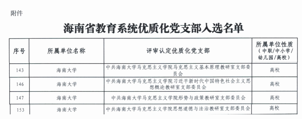 近日,海南省教育系统党支部优质化建设评选结果公布,澳门正规电子游戏平台马克思主义基本原理教研室党支部、习近平新时代中国特色社会主义思想教研室党支部、形势与政策课教研室党支部、思想道德与法治教研室党支部,凭借扎实的党建工作成效,共同荣获“海南省教育系统优质化党支部”称号。