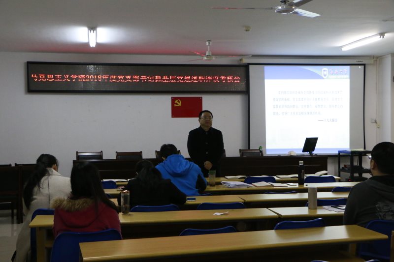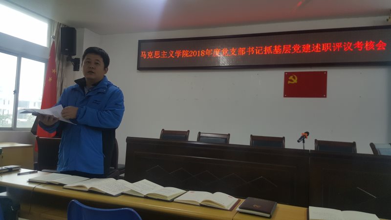 1月2日下午,澳门正规电子游戏平台2018年度党支部书记抓基层党建述职评议考核会在社科楼315顺利举行,学院党委书记段捷频,党委副书记张井富出席,党委委员以及学院各党支部书记参加会议,会议由张井富主持。