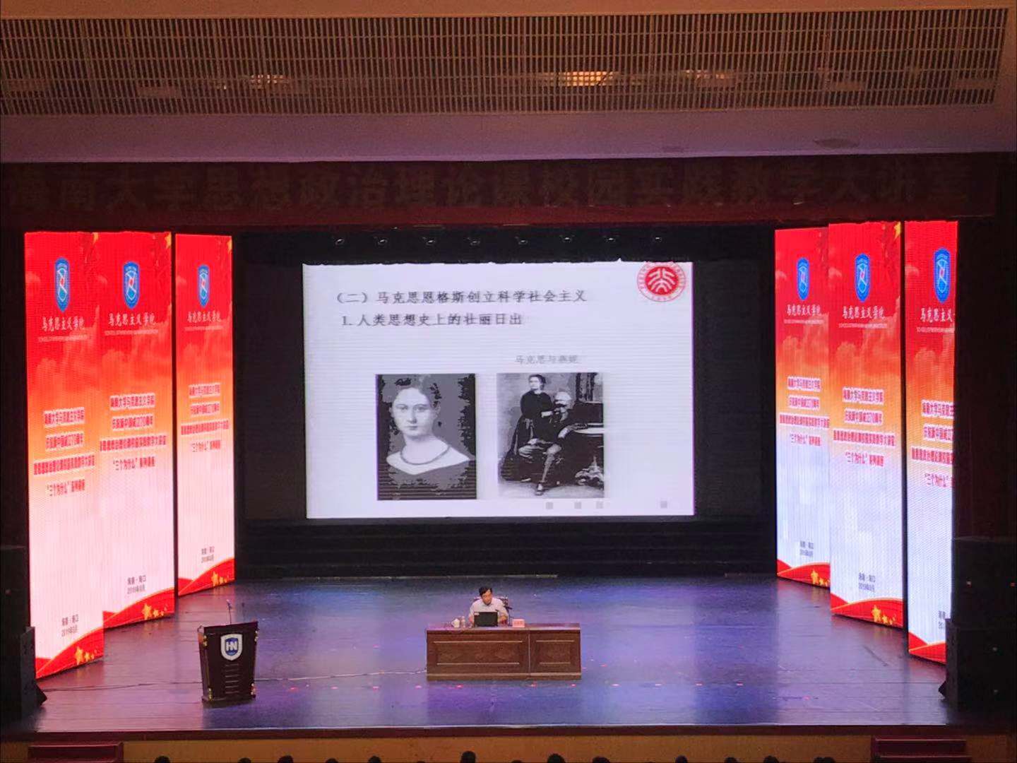 澳门正规电子游戏平台党委书记武耀廷,副校长胡新文、王崇敏、梁谋、叶光亮,校党委常委、组织部部长韩淑梅,校党委常委、宣传部部长谭勇,各学院书记、副书记,全校各党支部书记,澳门正规电子游戏平台思想政治理论课教师,2018级部分本科生共计1000余人聆听讲座。讲座由马克思主义副院长王善主持。