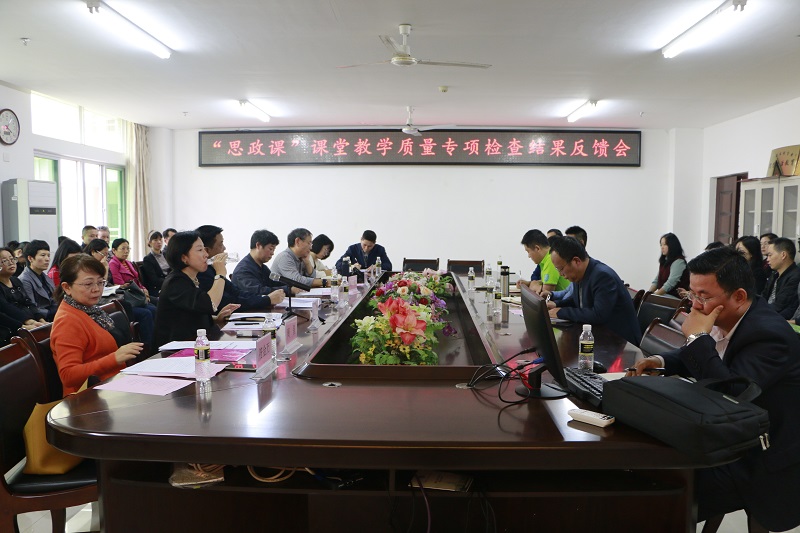 12月10日下午,澳门正规电子游戏平台在社科楼A-311顺利召开“思政课”课堂教学质量专项检查结果反馈会。副校长胡新文、教学质量评估中心郭立萍主任、教学质量评估中心副主任周兰愉、教学督导代表周星、霍世清,评估中心工作人员符金万、陈雨菡,澳门正规副院长王善、副院长吴朝阳,党委副书记张井富以及全体马院教职工出席会议。会议由副院长吴朝阳主持。