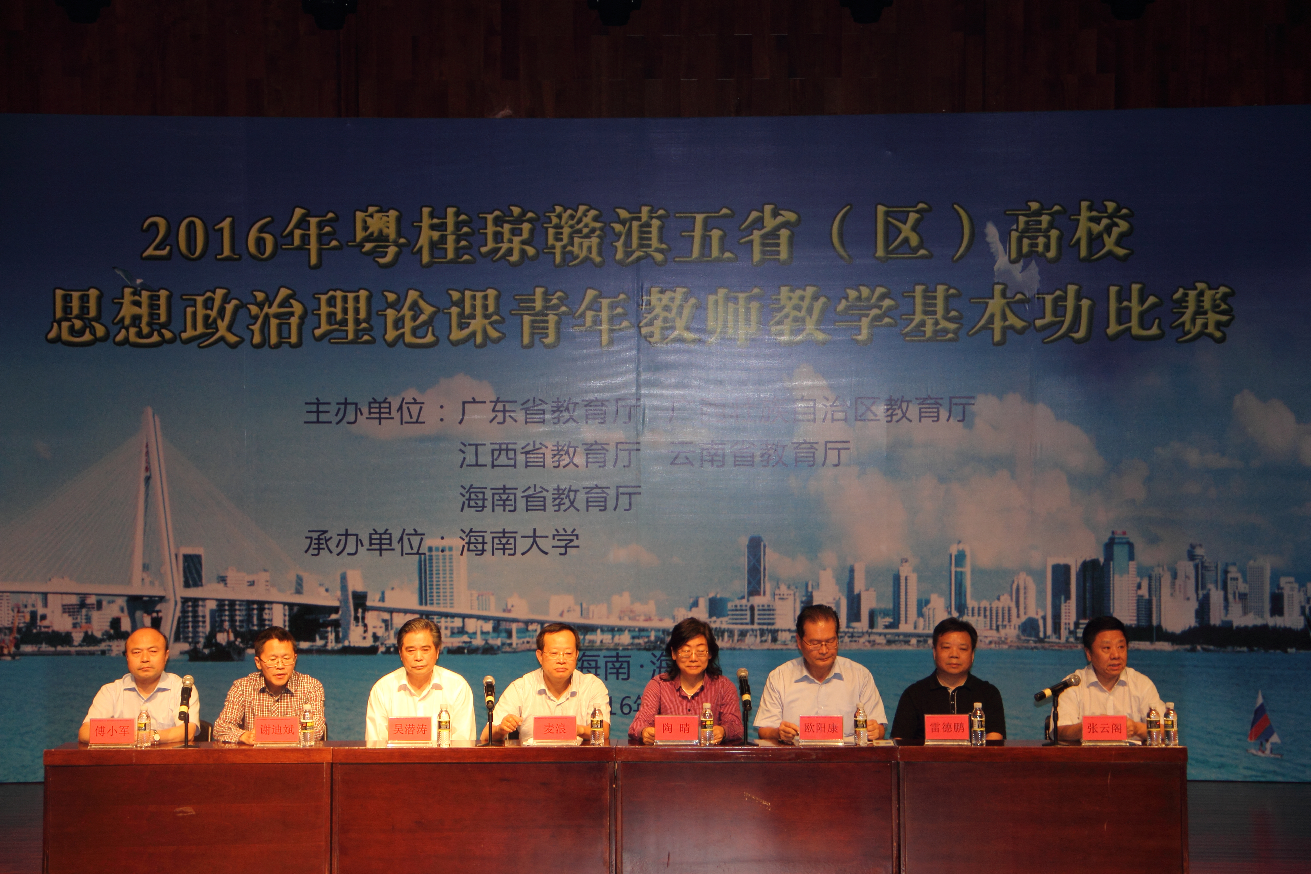 2016年11月2日—5日,第八届粤桂琼赣滇五省(区)高校思想政治理论课青年教师教学基本功比赛在我校隆重举行,省委教育工委专职副书记麦浪,广东、广西、海南、江西、云南等五省(区)教育工委、教育厅有关负责人,澳门正规电子游戏平台党委常务副书记廖清林出席,来自五省(区)近100余名教师代表参加开幕式。会议由海南省教育厅思政处处长文强主持。