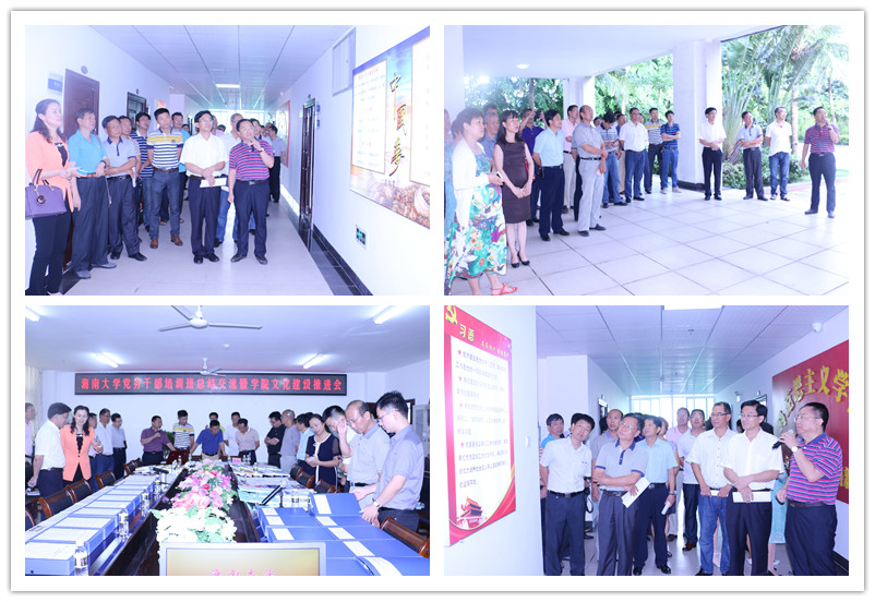 会议第二阶段,与会人员现场参观了澳门正规电子游戏平台的文化建设成果,段捷频向大家介绍了学院在文化建设方面的做法。他表示,学院文化建设紧紧围绕习近平总书记治国理政的文化大思路,秉承“六个一”的目标要求,通过加强学院党建组织文化、制度文化、精神文化、载体文化等的联动传播,增强党建文化建设的持续性和影响力,在充分利用多媒体的基础上,打造出“学习讲堂”、“海马影院”、“大学生网络评论大赛”、“首届海南省马克思主义理论学术论坛”、“校友论坛”等学院文化品牌活动,不断增强先进文化对师生的持续性影响,让师生在马爱马、在马信马、在马建马。