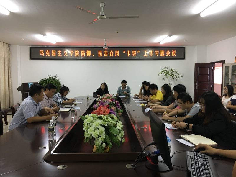 10月15日下午,澳门正规在会议室召开抵御台风“卡努”紧急工作会议。会议上传达了省委省政府、省教育厅和学校关于做好台风“卡努”防御工作的有关文件要求和会议精神,并对相关工作进行了积极动员和周密部署。院长李辽宁,院党委副书记张井富,副院长杨娜、王善,全体辅导员、班主任及部分师生参加了此次会议。