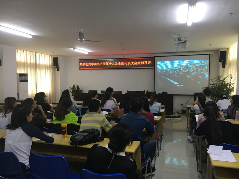 10月18日上午,澳门正规电子游戏平台党委认真组织师生观看中国共产党第十九次全国代表大会开幕会直播。院领导李辽宁、张井富、杨娜,部分教职工和学生100多人全程观看开幕会,直播活动在社科楼A311、A315和A618多媒体课室同步进行。