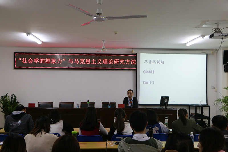 丁匡一首先以鲁迅作品为切入点,探讨鲁迅作品背后时代背景所蕴含的社会学哲理,为了让我们更好理解并在实际中运用社会学的想象力,他提出以下三点方法:一是总体性的辩证法与辩证法的总体性,从空间的历史的角度深入挖掘背后深层内涵;二是网状思维vs点状思维,以自己为点深入时代,学会观察、学会思考,研究事物动态的发展的联系;三是要有马克思主义哲学批判精神,要敢于批评,勇于超越,他认为以上三种方法统一且互动,并与大家分享了自己的感悟。他强调,要切己体察的发觉问题,返本开新的阅读文本,与时俱进的关注现实。以阅读为第一要务,阅读经典,及时记录感悟。最后他为大家推荐经典读物,期待大家有所收获。并期望澳门正规电子游戏平台与海南师范大学两校研究生有机会可以互相探讨、互相交流,碰撞出思想火花。