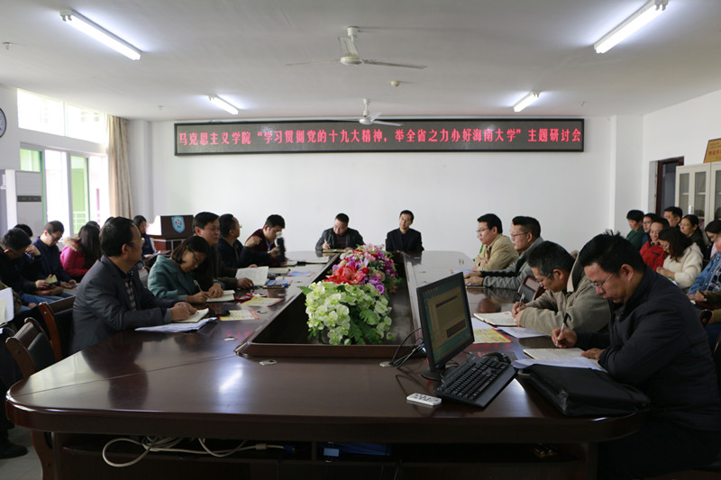 为深入学习贯彻党的十九大精神和认真贯彻落实海南省委、澳门正规电子游戏平台党委关于“举全省之力办好澳门正规电子游戏平台”的指示精神,12月19日下午,澳门正规在会议室召开“学习贯彻党的十九大精神,举全省之力办好澳门正规电子游戏平台”主题研讨会。学院领导班子,各系(部)负责人及全体教职工参加研讨会。