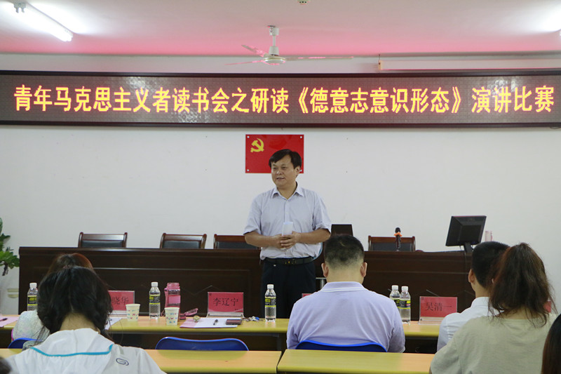 6月29日晚,澳门正规电子游戏平台在社科楼315举行了研读《德意志意识形态》演讲比赛。澳门正规电子游戏平台院长李辽宁、党委副书记张井富出席并担任演讲比赛的评委。