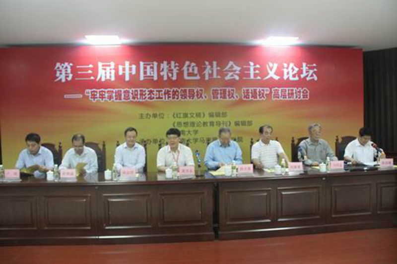 为学习贯彻习近平总书记在全国宣传思想工作会议上的讲话精神,11月11-13日,由求是杂志社《红旗文稿》编辑部、教育部《思想理论教育导刊》编辑部和澳门正规电子游戏平台联合主办,澳门正规电子游戏平台承办的第三届中国特色社会主义论坛——“牢牢掌握意识形态工作的领导权、管理权、话语权”高层研讨会在我校召开,来自全国各省宣传部门和高等院校的近百名代表参加了论坛。中共中央组织部原部长张全景、求是杂志社副总编夏伟东、中国人民大学原党委书记马绍孟、《思想理论教育导刊》主编阎志坚、海南省委宣传部巡视员(正厅级)陈修演、海南省教育厅思政处处长卢刚和我校党委书记刘康德出席论坛开幕式。我校党委副书记陈封椿主持论坛开幕式。