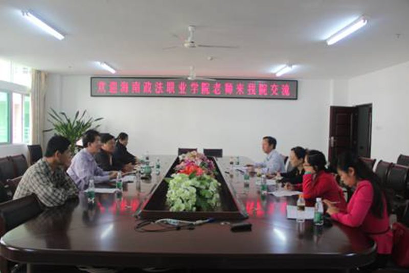 11月29海南政法职业学院社科部陈焕随副主任等一行多人,就当前思想政治理论课教学方法改革与澳门正规教师进行交流。院党委书记梁谋主持座谈交流会。