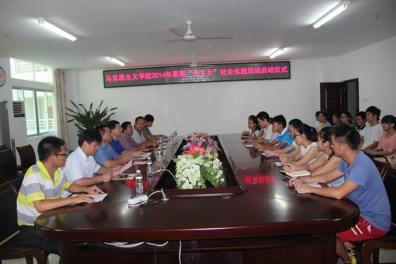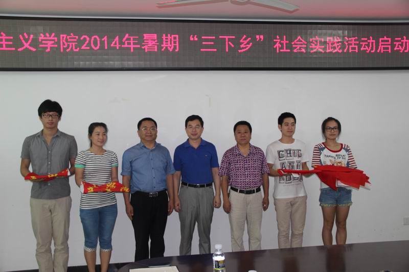7月9日上午,澳门正规在学院会议室举行2014年大学生暑期 “三下乡”社会实践活动启动仪式。院长李德芳、院党委书记段捷频、副院长张云阁,社会实践团队带队老师李辽宁、王善、张君成出席,全体参加社会实践团队的同学参加启动仪式。仪式由王善老师主持。 李德芳院长在仪式上作动员讲话。他说,学院高度重视大学生暑期社会实践活动,学院老师结合自己的在研课题,积极组织 暑期社会实践团体,为活动的深入开展提供了强有力的支持。在同学们的积极参与和相关老师的精心指导下,澳门正规大学生暑期社会实践每年都取得了比较好的成果,并形成了一些好的做法和传统。他对参加社会实践团队的同学们提出了四点要求,一是要树立集体观念、培养合作意识、发扬团结协作精神;二是要深入基层、深入农村,为群众服务、向群众学习;三是要结合专业特点提升志愿服务水平,形成高水平的社会实践成果;四是要高度重视安全问题。最后,他希望同学们珍惜机会,真正在实践的过程得到锻炼和成长,并力争拿出一些高水平的实践调研成果。 社会实践团体指导教师代表李辽宁老师、暑期社会实践学生代表李飒楠同学分别在仪式上发言,参加社会实践团队的全体同学进行了宣誓。 在启动仪式上,院长李德芳、院党委书记段捷频、副院长张云阁分别向四支社会实践团队授院旗。今年暑期的四只社会实践团队分别是:红色文化资源调研与老区支教社会实践团、“ 海南省公民阅读现状”实践调查团、“海南黎苗旅游村寨保护与开发”实践调查团、“海南红色文化实践育人功能”实践调查团。