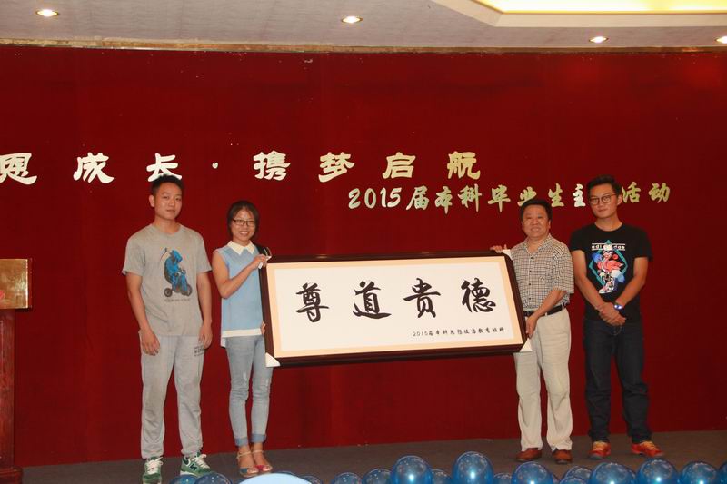时光荏苒,又到一年毕业季。为了给过去的四年大学生涯划一个完美的句点,5月25日下午,澳门正规举办2015届本科生毕业生 “感恩成长 携梦启航”主题活动。2011级思想政治教育名誉班主任——澳门正规电子游戏平台党委副书记陈封椿,院党委书记段捷频、院长李德芳、副院长张云阁、杨娜,学工办老师、毕业班班主任及部分教师出席活动。 主题活动展示了2011级思想政治教育班大学四年以来的丰硕成果:2011级思想政治教育班曾连续两年获得校级先进班集体,连续两年获五四红旗团支部标兵,荣获学校主题团日活动先进班级,全班37人有11人升学攻读硕士研究生人,4人通过司法考试,大学英语四级通过率达86%,班级党员比例(含预备党员)达65%,班级义务献血总量达9300cc,班级同学们也积极参加暑期社会实践活动,其中两位同学曾荣获社会实践学生积极分子,11级同学们在2012年期末考试中首次进行了学校的诚信考试,启动免监考诚信考试试点,促进学校学风和考风建设。其中,11级思政班优秀学生代表郭灏,曾获中国大学生自强之星提名奖,宝钢优秀学生奖,大学生政协e提案优秀奖,全国关爱女孩青年志愿者行动调研报告一等奖,全国大学生社会实践先进分子一百强等五项国家级荣誉,成功入选澳门正规电子游戏平台2015年年度人物,现已成功保送至中国人民大学攻读硕士学位。 校党委副书记、2011级思想政治教育班名誉班主任陈封椿满怀深情为毕业生作赠言,他对2011级思想政治教育班的丰硕成果表示欣慰,对学院老师的辛勤栽培工作给予肯定,同时也道出对同学们的不舍。他希望即将走向社会的全体毕业生要心存感恩,感谢学校、感恩老师,在以后的工作和生活中,始终保持六颗“心”,即进取心、责任心、平常心、包容心、自信心和中国心,对工作和学习始终保持积极向上的进取心,努力做好每一件事,要有高度责任感,勇于担当,要以平常心对待一时的得失,要有包容心和宽广胸怀,永远充满自信,始终保持对祖国的热爱之心,拥有一颗中国心,为实现中华民族伟大复兴的中国梦做出自己的贡献。他最后祝愿11级毕业班同学们在新的起点、新的征程前程似锦、前途辉煌,祝愿海大明天更美好! 活动中,陈封椿老师接受院党委书记段捷频、院长李德芳颁发的聘书,受聘为澳门正规电子游戏平台分党校指导老师,继续参与指导澳门正规电子游戏平台学生工作。 此次毕业生主题活动安排了诗朗诵,毕业班同学代表向名誉班主任陈封椿老师、班主任陈思莲老师献花致谢,向学院赠送刻有“尊道贵德”的牌匾作为纪念品等活动内容,院党委书记段捷频、院长李德芳分别向全体毕业生作毕业赠言,活动最后,为了感谢这一路上帮助同学们成长的老师们,11级全体同学合唱《相信我们会创造奇迹》,并请到场老师们上场签名合影留念。 感恩成长,一路上的风雨相伴;携梦启航,未来里的彼此问候。11级思政班是团结的集体、奋斗的集体,相信他们会创造奇迹。今天不会曲终人散,而是另一个崭新的开始!