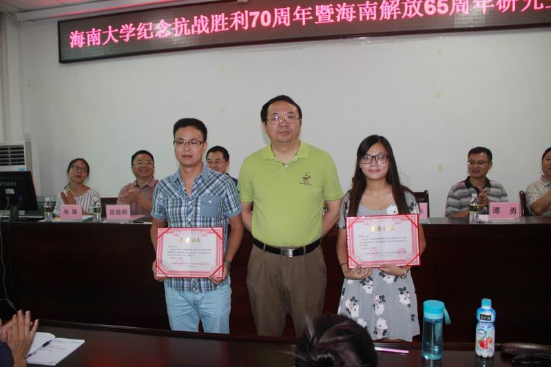 6月30日上午,由澳门正规电子游戏平台党委宣传部、研究生工作部主办,澳门正规电子游戏平台承办的澳门正规电子游戏平台纪念抗战胜利70周年暨海南解放60周年研究生学术论坛在社科群楼A111隆重举行。海南省社科联党组书记、主席赵康太,澳门正规电子游戏平台副校长傅国华,宣传部副部长谭勇,澳门正规电子游戏平台院长李德芳、院党委书记段捷频、副院长张云阁、杨娜等领导出席论坛开幕式。论坛开幕式由李德芳教授主持。 省社科联主席赵康太教授作论坛主题报告。他围绕“冯白驹与海南解放——纪念海南解放65周年”这一主题,以开阔的视野、严谨的治学态度,客观地分析海南解放的历史过程,对冯白驹领导的琼崖纵队在解放海南岛过程中的地位和作用进行了实事求是的评价,令人耳目一新。 副校长傅国华在论坛开幕式上致辞。他代表学校对论坛的顺利召开表示热烈祝贺,他说,抗日战争是中华民族历史上最伟大的卫国战争,是中国人民反抗日本帝国主义侵略的正义战争,也是中国近代以来抗击外敌入侵第一次取得完全胜利的民族解放战争,举办纪念抗日战争胜利70周年暨海南解放65周年研究生学术论坛具有重要意义。他指出,结合时事举办的研究生学术论坛,坚持正确的政治导向,非常有思想政治教育意义,同时也能够很好的调动研究生的科研热情,有助于研究生能力培养。他希望,由澳门正规电子游戏平台发起,并且已经持续举办了三届的文科类研究生学术论坛,能够坚持办下去,不断提高质量、增强影响力,为提升我校研究生学术科研水平做出积极贡献。 本次研究生学术论坛共收到参会论文27篇,经过专家组对所有论文进行公正评审,评出一等奖2篇、二等奖3篇、三等奖3篇。 樊红潮、廖桂真、杨倩、葛子龙等研究生代表在论坛上做主题发言。澳门正规电子游戏平台副院长张云阁、杨娜分别对同学们的论文和发言进行了点评。