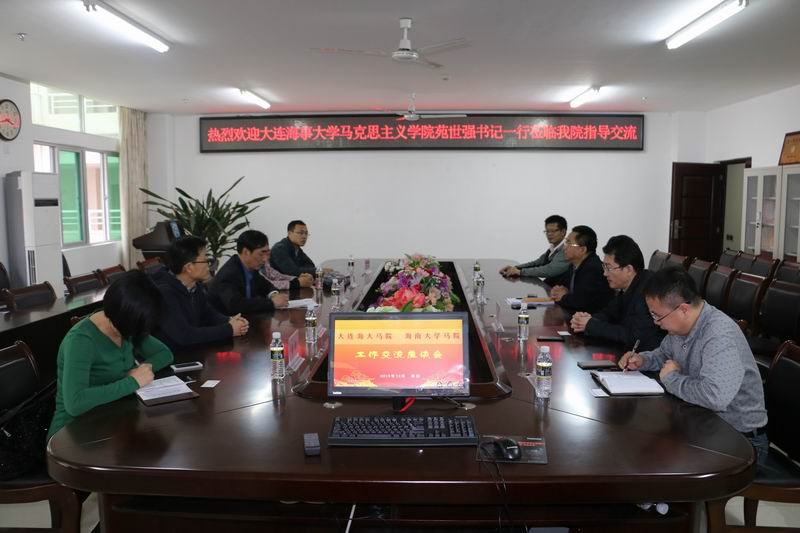 12月18日下午,大连海事大学澳门正规电子游戏平台党委书记苑世强一行5人到澳门正规访问交流,学院党委书记段捷频以及贺尧夫、丛德生、张君成等老师参加交流座谈会。 双方就学科建设、思想政治理论课建设与教学、学院管理、党建与精神文明和研究生管理等方面的内容进行了深入的交流和讨论。