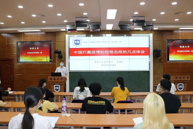 本次“开学第一课”以爱国主义教育、“生活观、 生命观、生态观”为主线的“三生”教育、卫生防疫知识教育尤其是战“疫”人物和先进事迹、我为自贸港建设作贡献等为主要教育内容,通过微讲堂、专题讲座、主题班会等多种形式加强学生思想政治教育,涵养爱国爱党情怀,强化使命担当。