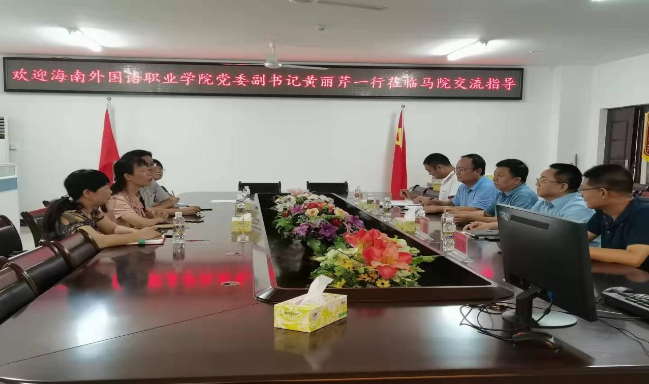 9月14日上午,海南外国语职业学院党委副书记黄丽芹一行到澳门正规电子游戏平台交流指导工作。澳门正规电子游戏平台党委书记段捷频、院长张云阁、副院长王善、副处级辅导员张君成和教师代表参加交流会。