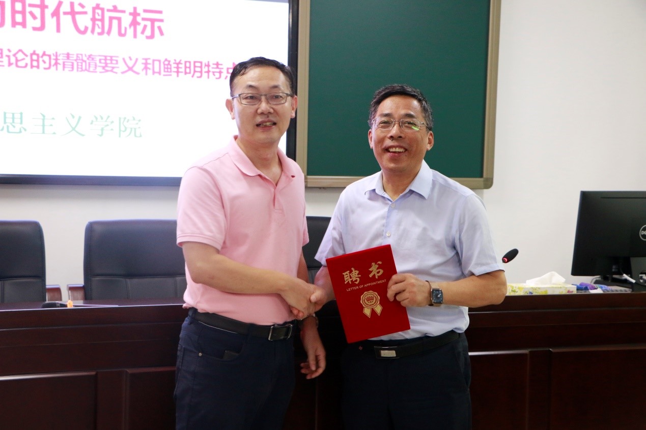 9月29日上午,澳门正规电子游戏平台2021-2022学年冬季小学期系列讲堂第一讲在社科楼A309举行。南京师范大学王永贵教授应邀为澳门正规学生作以“习近平总书记文化强国理论及鲜明特点”为主题的学术报告,副院长吴朝阳出席报告会并为王永贵教授颁发澳门正规电子游戏平台“冬季小学期授课外聘专家”证书。