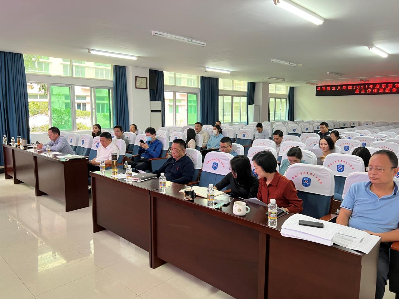 3月6日上午,澳门正规电子游戏平台在社科楼A309举行2021年度系室主任、党支部书记、班主任述职汇报会。院长张云阁、院党委书记段捷频、副院长杨娜、王善、吴朝阳、秦晓华,院党委委员、副处级辅导员张君成,全体系室主任、党支部书记、班主任参加会议。