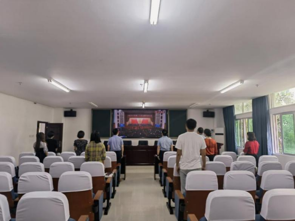 2022年10月16日上午10点,澳门正规电子游戏平台领导班子成员、党支部书记及部分老师代表于社科楼C309会议室集中收看中国共产党第二十次全国代表大会开幕会。