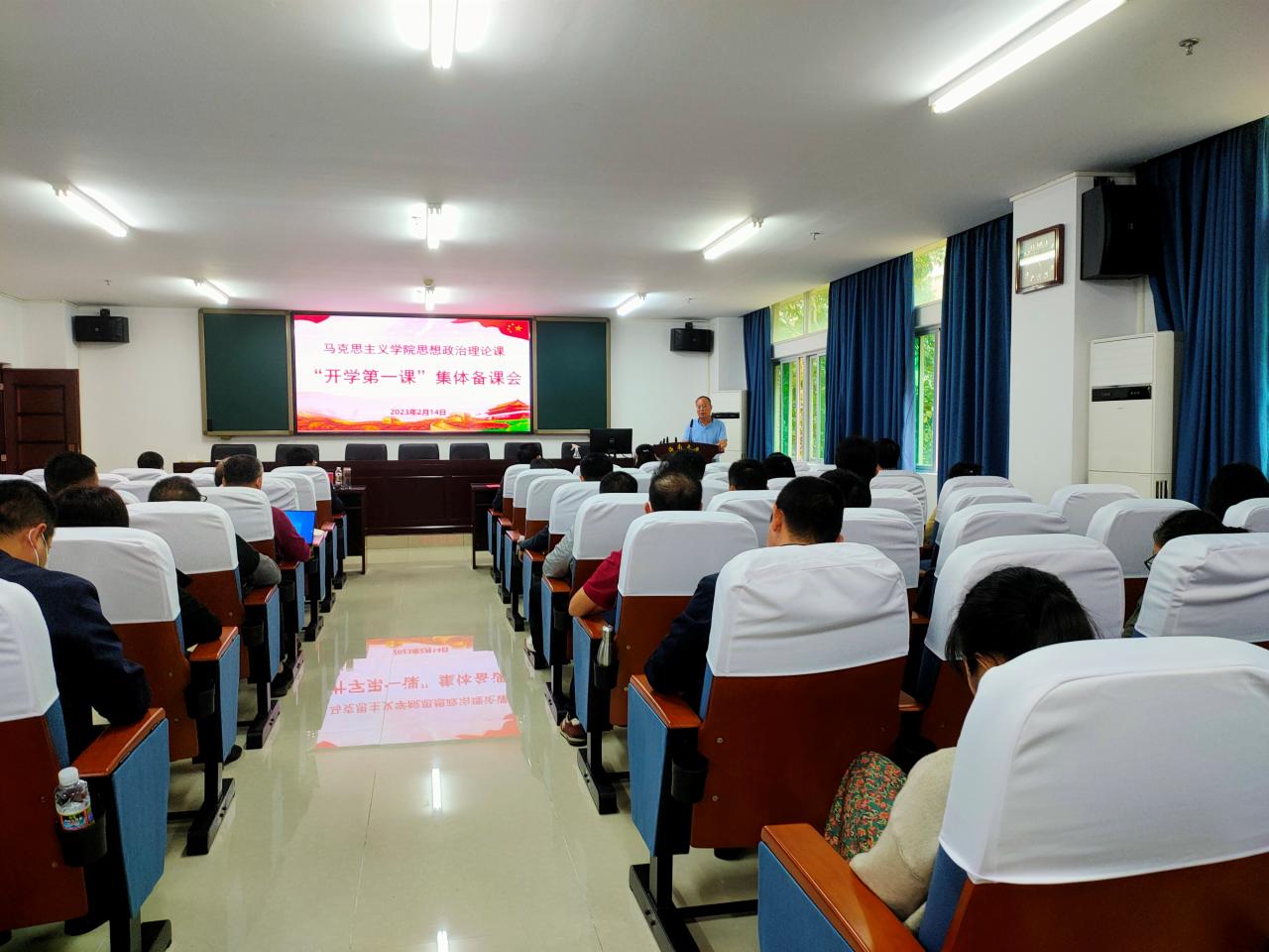 会议第一个阶段,学院副院长王善传达学习了教育部、省教育厅等有关组织开展2023年春季学期“开学第一课”活动的文件精神和相关要求,安排了学院本学期思政课集体备课等工作。
