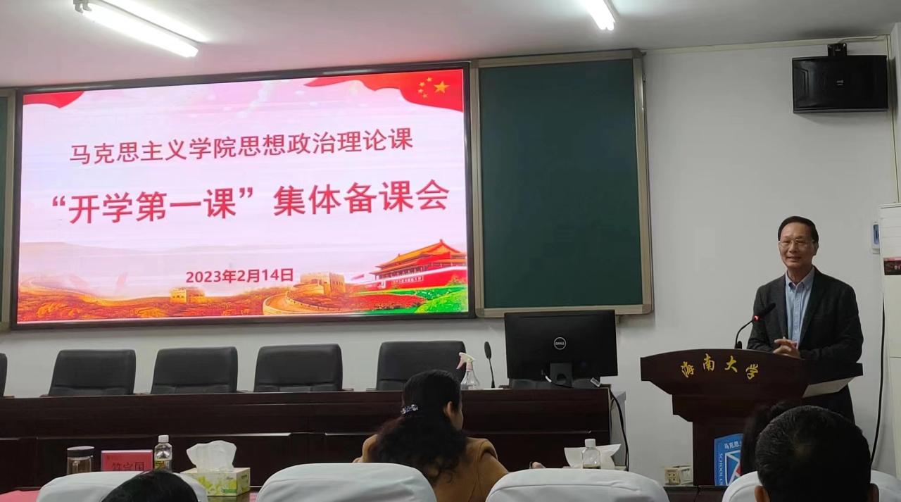 2023年2月14日下午,为深入学习宣传贯彻党的二十大精神,更好地发挥思政课在落实立德树人根本任务中的关键作用,进一步提升思政课教学质量,澳门正规电子游戏平台召开思想政治理论课“开学第一课”集体备课会。校党委书记符宣国、校党委常委、副校长梁谋、校党委常委、宣传部部长韩淑梅出席;学院领导班子、全体思政课专任教师和书院“形势和政策”课部分教师参加。学院教学督导委员会主任、学院教学委员会副主任贺尧夫老师主持。