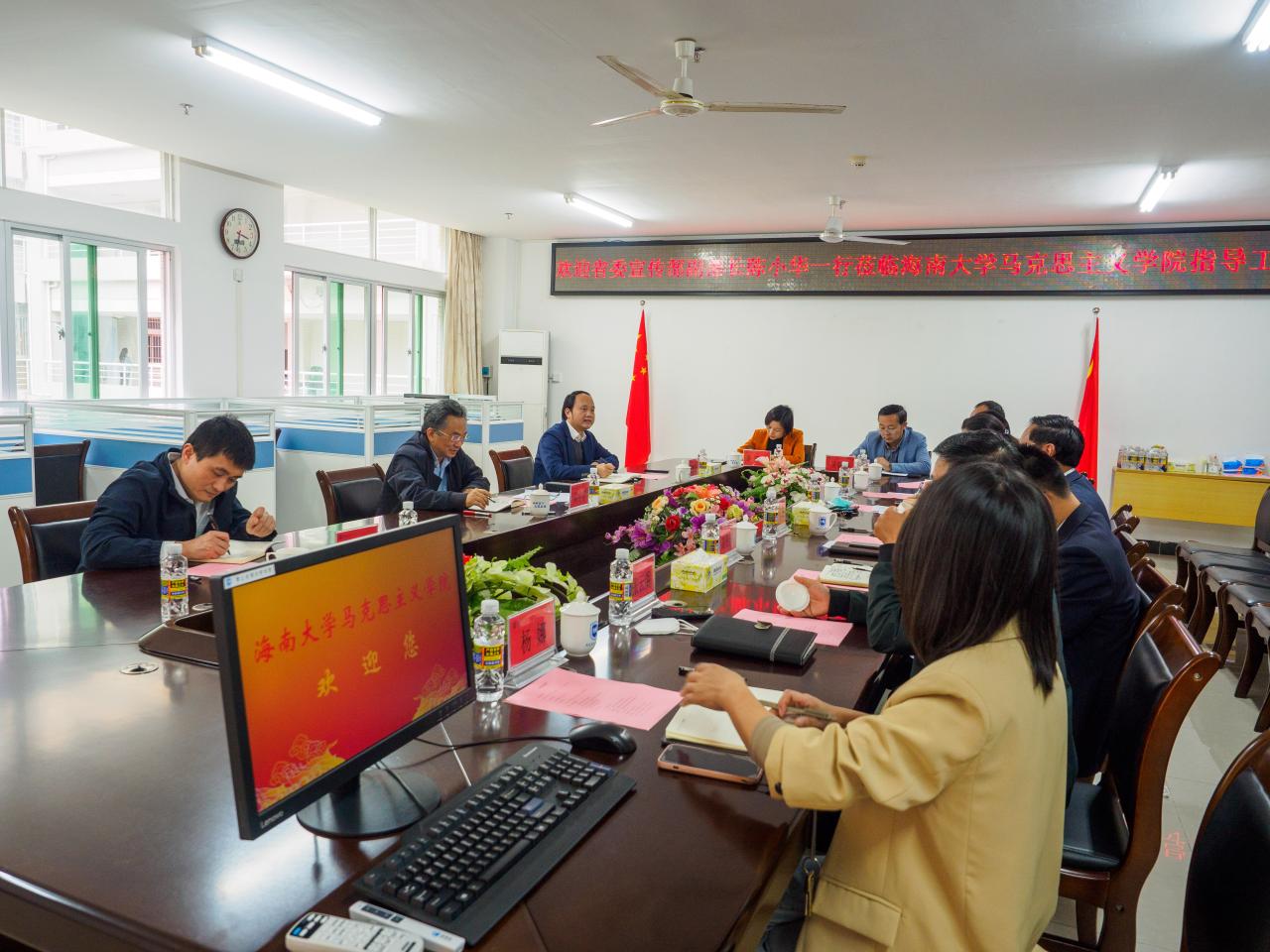 2月20日下午,海南省委宣传部副部长陈小华一行到澳门正规电子游戏平台调研。澳门正规电子游戏平台党委书记符宣国,党委常委、副校长高佃恭,党委常委、宣传部部长韩淑梅出席,澳门正规电子游戏平台领导班子成员参加会议。会议由符宣国书记主持。