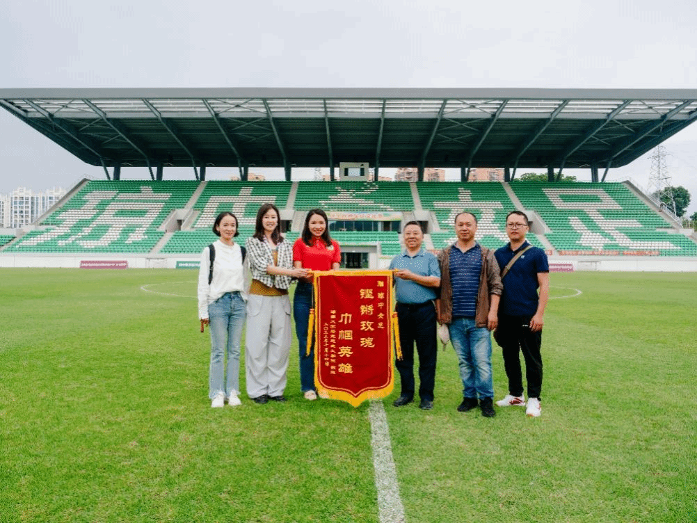 在琼中女子足球队实训基地,女足管理中心宣传部部长王斯婧向大家介绍了琼中女足的发展历史及取得的辉煌成绩。第一代球队队员、现教练组组长高禹萱和师生分享了自己的成长过程。张云阁教授代表学院向琼中女足赠送了锦旗。同学们与王斯婧部长、高禹萱教练进行了热烈的交流,同学们表示要学习琼中女足,吃苦耐劳、勇于拼搏的精神,勤奋学习,取得更好的学习成绩。