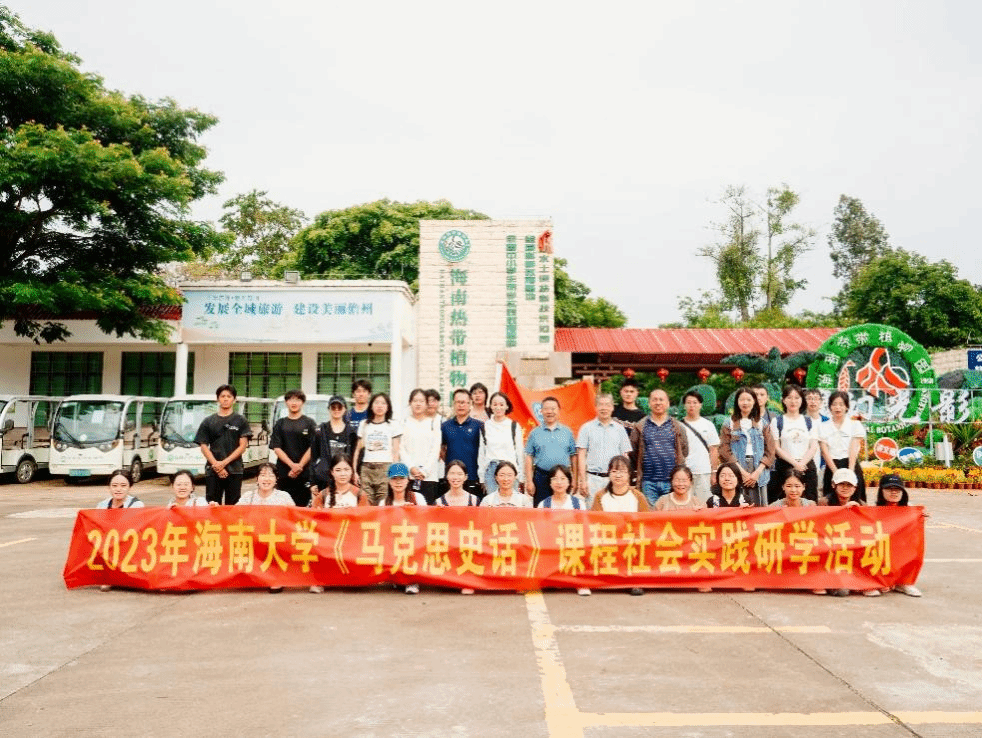 10月14日,澳门正规电子游戏平台组织师生开展了《马克思史话》课程社会实践研学活动。课程负责人张云阁教授带队,30多名师生先后到海南热带植物园、澳门正规电子游戏平台儋州校区及琼中女子足球队实训基地参观考察。