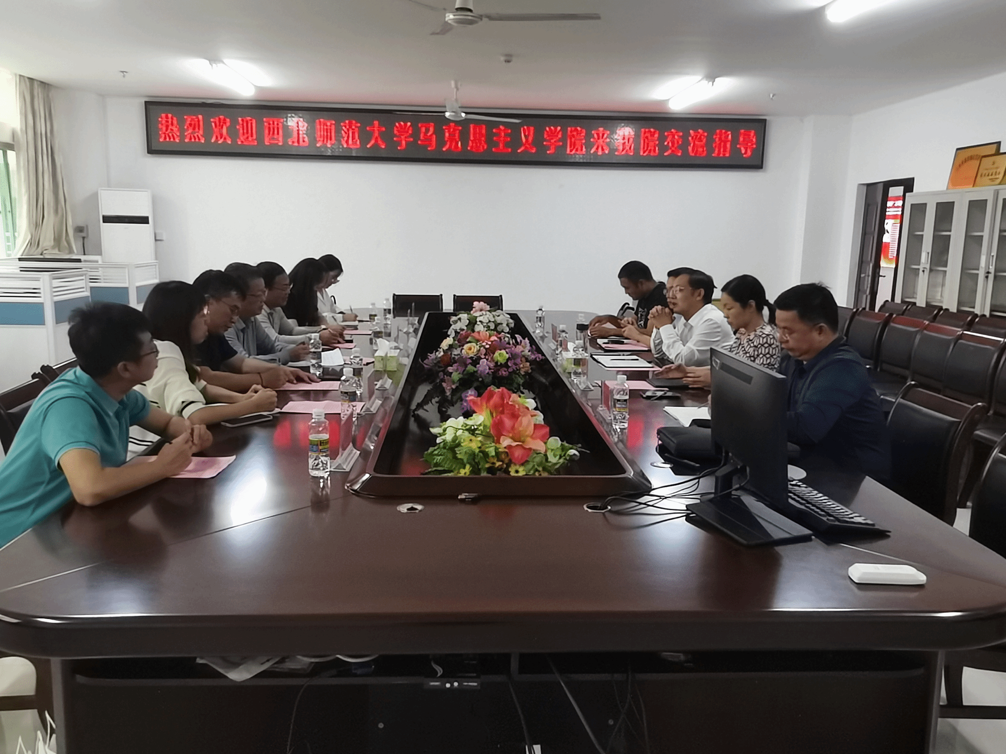 11月21日15:30,西北师范大学澳门正规电子游戏平台副院长孙健一行7人,在学院309会议室与我院部分思政课教师开展教研交流活动。本次会议由学院副院长吴朝阳老师主持。