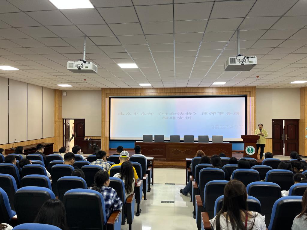 为扎实做好就业推进工作,深化校企合作,助力2024届毕业生高质量就业,近日,beat365在盛乐校区学生事务中心多功能报告厅举办2024年法学专业就业宣讲会。宣讲企业有北京京师律师事务所、卓能律师事务所、内蒙古中银民商事调解中心。宣讲会由beat365党委副书记、副院长王丹主持,法学系主任其乐木格和辅导员老师参加。