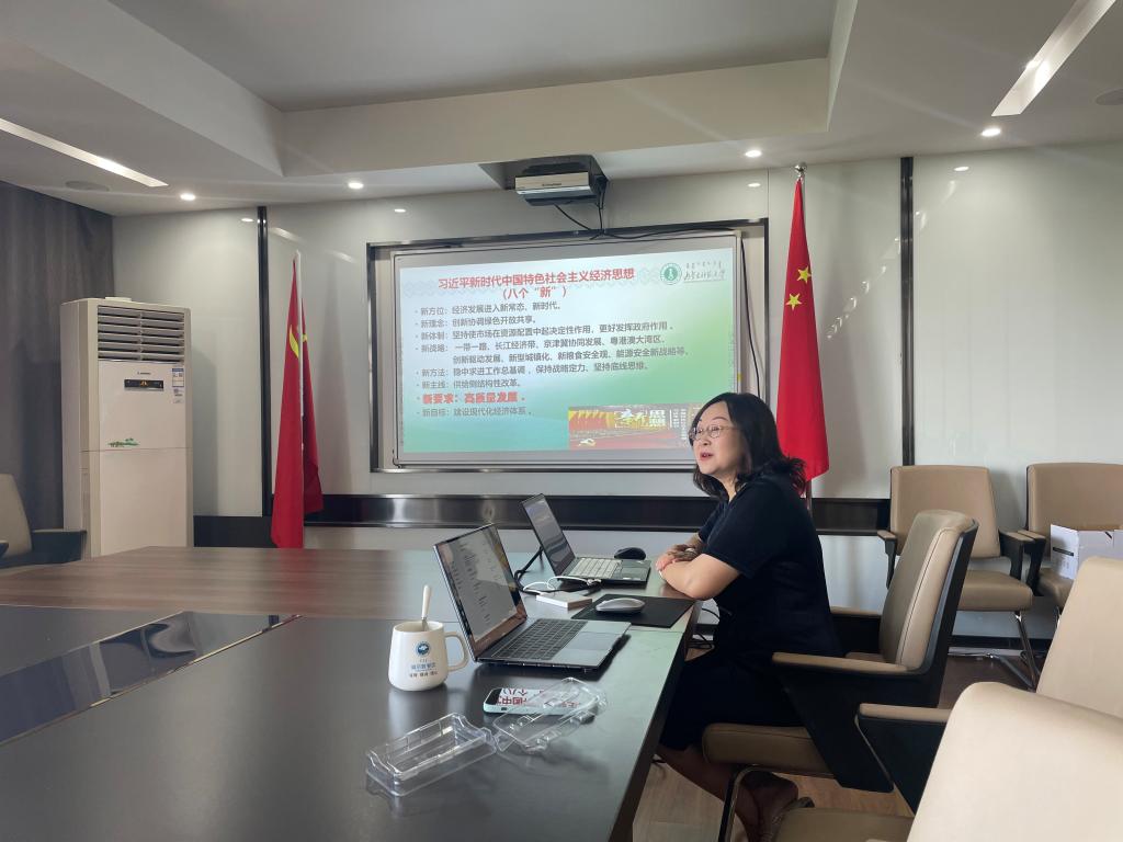 为深入学习贯彻习近平新时代中国特色社会主义思想,6月12日,beat365教工第一支部在勤政楼509会议室组织召开主题教育党日活动,邀请beat365李丽教授作题为“以新发展理念引领经济高质量发展”的专题讲座。本次活动由教工一支部书记解红勋主持,支部全体党员参加活动。