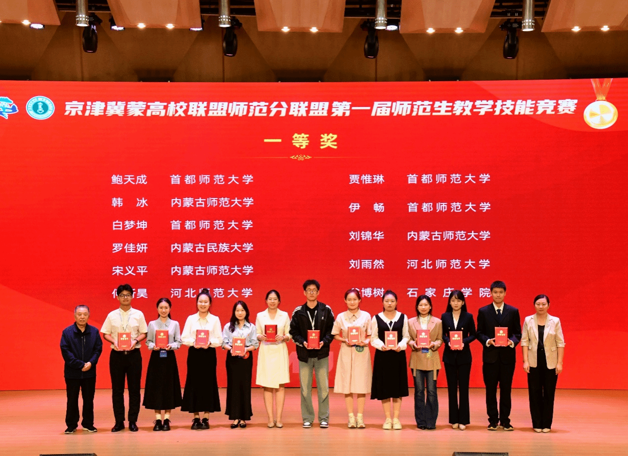 能在京津冀蒙高校联盟师范分联盟首届师范生教学技能竞赛中获一等奖,我倍感荣幸。这份荣誉离不开学院领导的关怀、老师们的指引,尤其要感谢指导老师顾媛媛、许星杰的悉心打磨与无私支持,是你们的帮助让我不断突破。