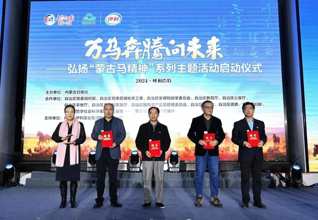 1月12日,由内蒙古日报社主办、伊利集团支持、自治区哲学社会科学重点研究基地——“蒙古马精神”研究基地等12家合作单位参与策划的“万马奔腾向未来——弘扬‘蒙古马精神’系列主题活动”在呼和浩特市启动。
